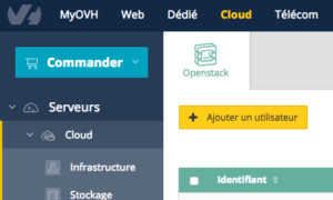 On va créer un utilisateur spécifique via l’item Openstack pour se connecter à ce conteneur (pour limiter les problèmes de fuites)